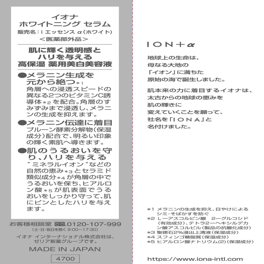 - > 【医薬部外品】イオナ ホワイトニングセラム 30ml