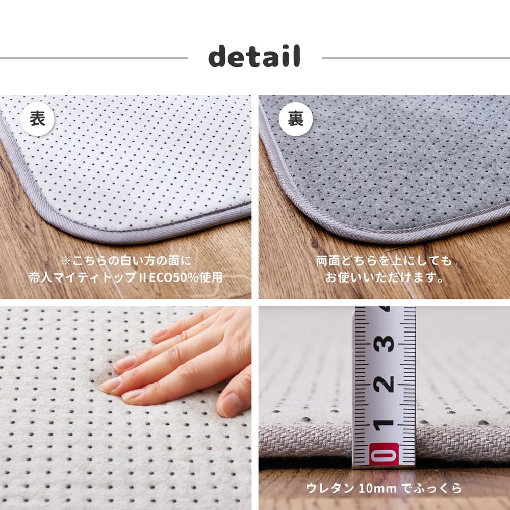 表面:ポリエステル100% 中材:ウレタンフォーム10mm 裏面:不織布(すべり止め付き)