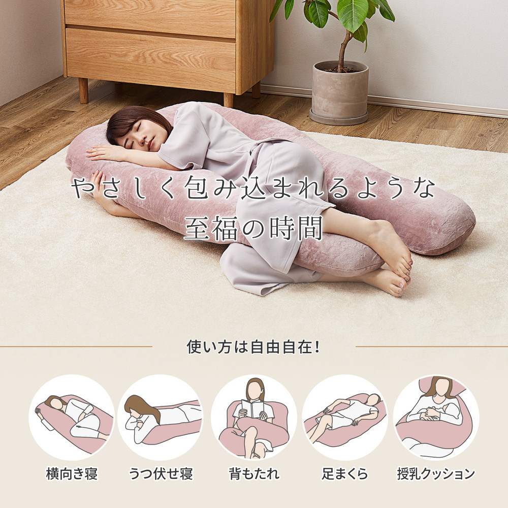 とろけるような肌触りの、もちもち巨大抱き枕。U字型なので、寝返えっても抱けるし挟める。妊婦さんにも◎ 2重カバー式なので、取り外して洗えて、中材の量も調整可能。ダブルファスナーで着脱簡単。