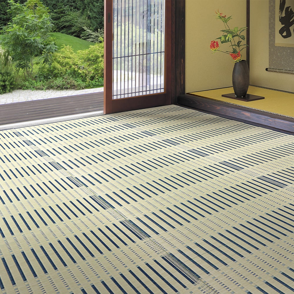 丈夫で手触りのよい掛川織でシンプルに織り上げています。掛川織は、い草と経糸の絡まる間隔が約2.5~3cmあり、経糸に太い専用の糸を使用した織り方です。ボリューム感と高級感があります。無地の上敷きではものたりない方にもおすすめです。和洋を問わないモダンさでインテリアのベストアイテムとして永く愛されている商品です。