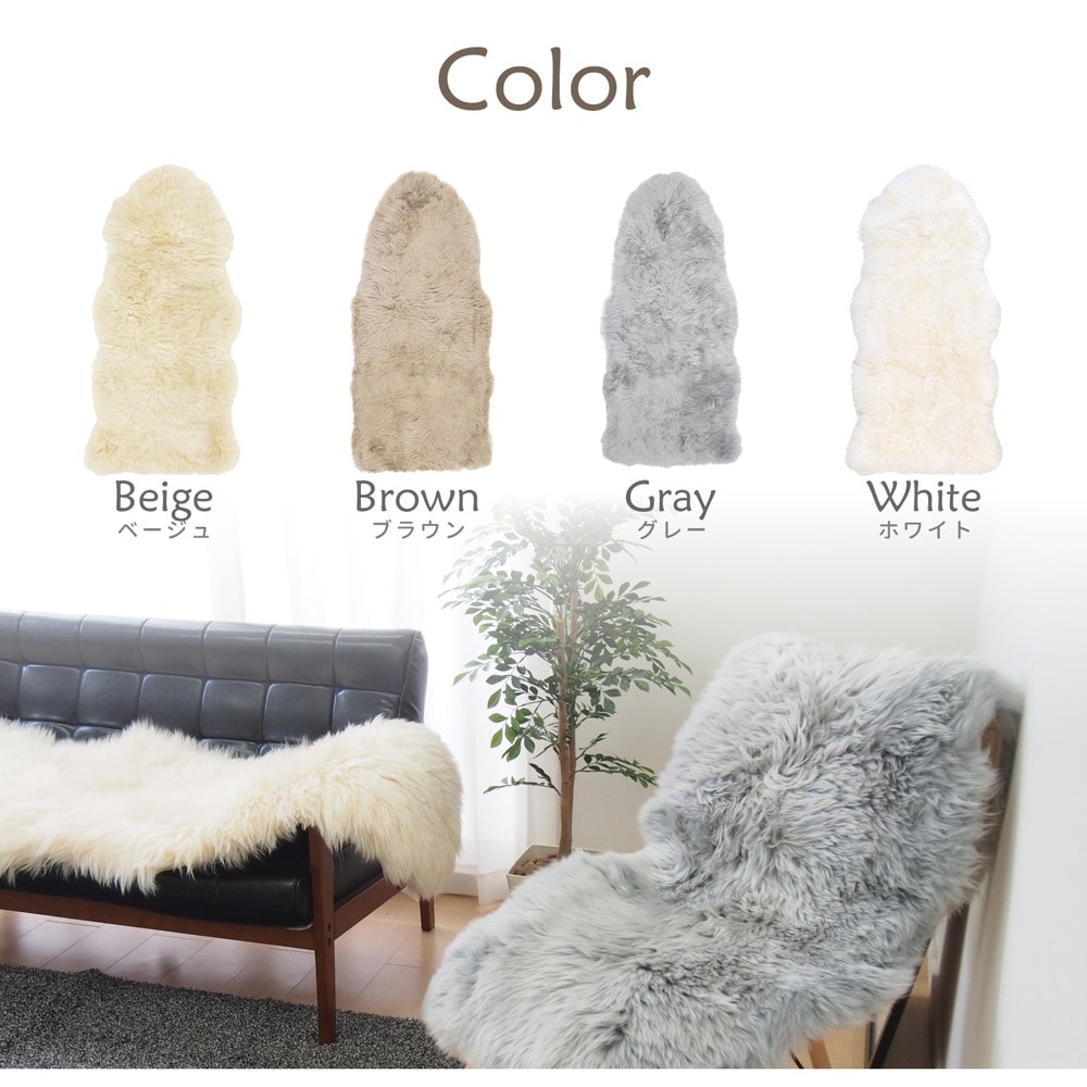 表面:羊毛皮100%(ニュージーランド原皮) 中材:ウレタンフォーム、裏面:ポリエステル100%
