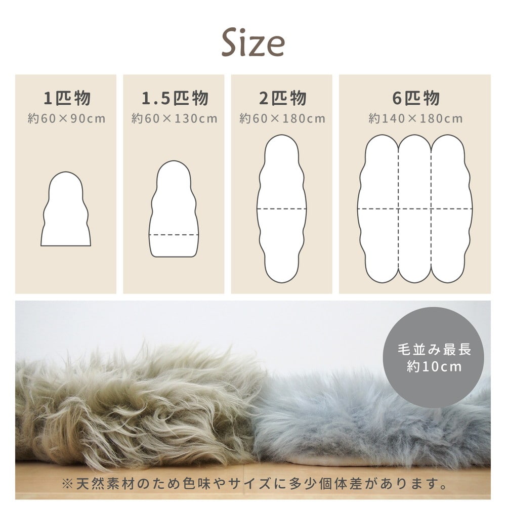 ニュージーランドの大自然で育った羊からとれるムートンは、自然からの贈り物。吸水性、放湿性に優れ、火にも強く、燃え広がりにくい、まさに呼吸する素材。表面は水を弾く性質もあり、自然の効力をもった人にやさしい万能素材です。包み込まれるようにやわらかで、優しいぬくもりがあふれるタッチ感は、他の追随を許さない特別な感触です。中材にはウレタンフォームを使用しているのでクッション性があります。