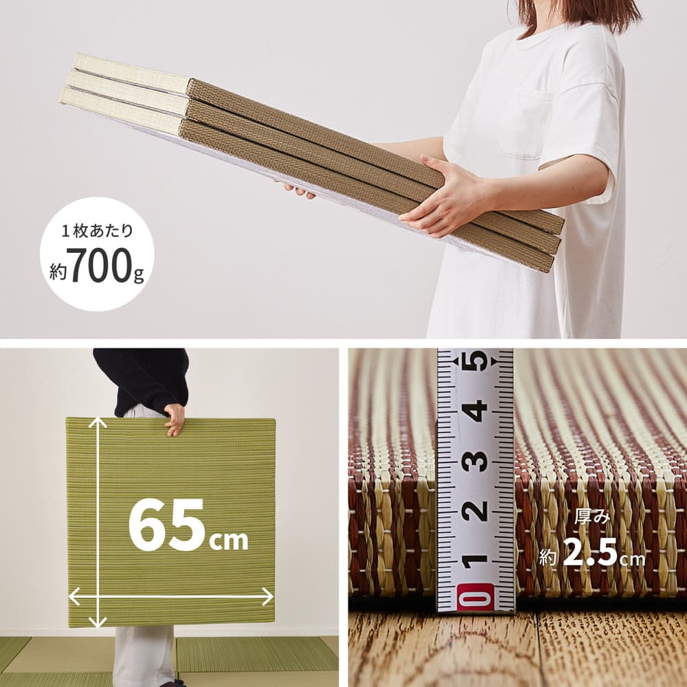 表面:い草100% 中材:ポリエチレン・ポリスチレン 裏面:不織布(滑りにくい加工付 裏面5カ所)