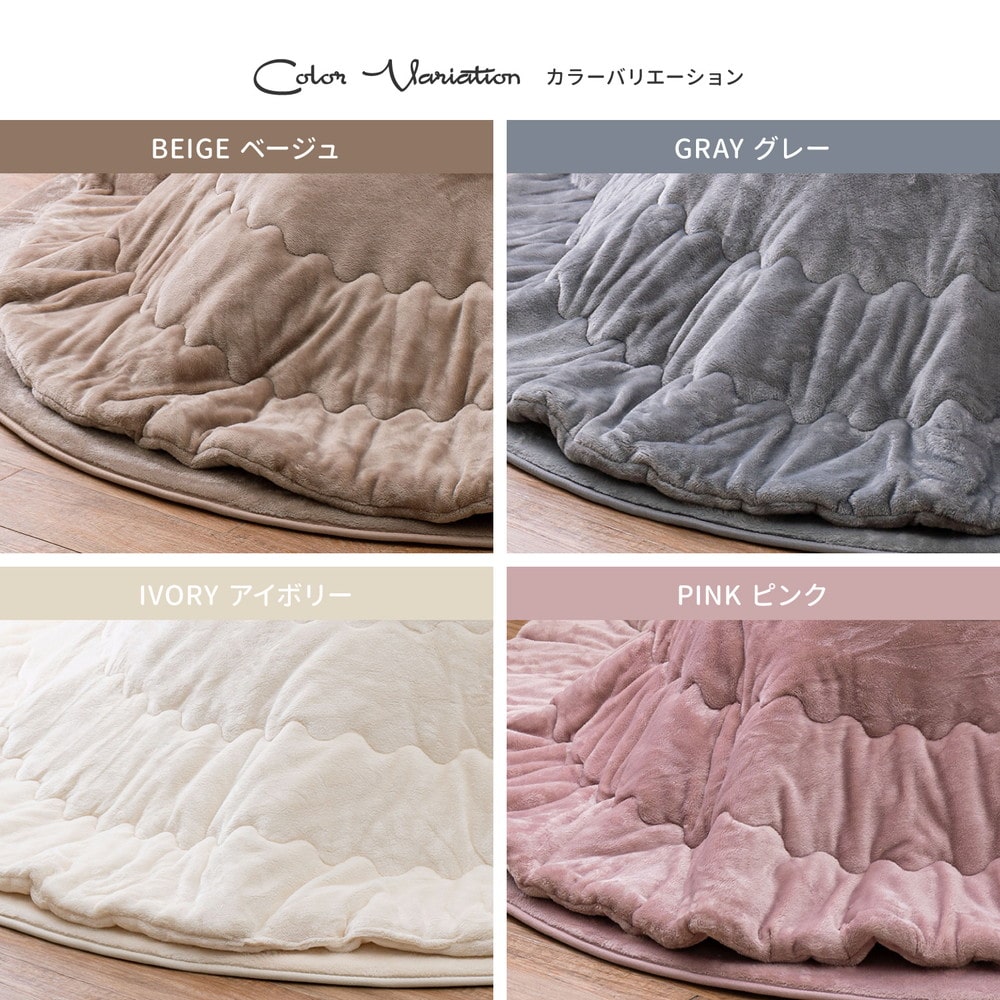 思わず触れたくなるようなふんわりなめらかタッチのこたつ掛け布団!収納もしやすい薄掛けタイプです。波型縫製で中わたが片寄るのを防ぎます。また、汚れても洗えるためいつも清潔にお使いいただけます。サイズはスクエアタイプとサークルタイプ、合わせて11サイズからお選びいただけます。