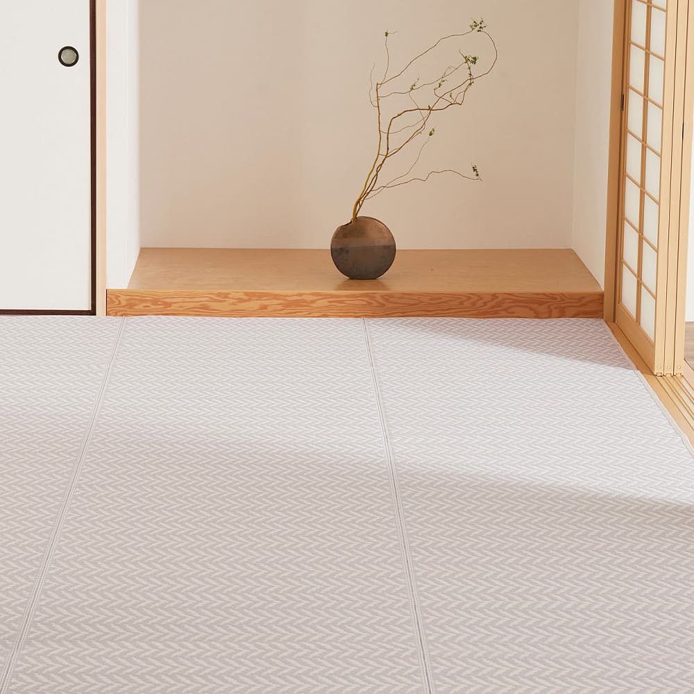 パステルカラーがかわいい、水拭きできる素材のい草風カーペット。パイプの表面に筋が入っている筋入りパイプで、肌に密着しないからベタベタしにくく、汗ばむ季節にもおすすめ。また、パイプ内の空気層の保温効果で床からの冷気を防ぐため、寒い季節でもあたたかく過ごせます。
