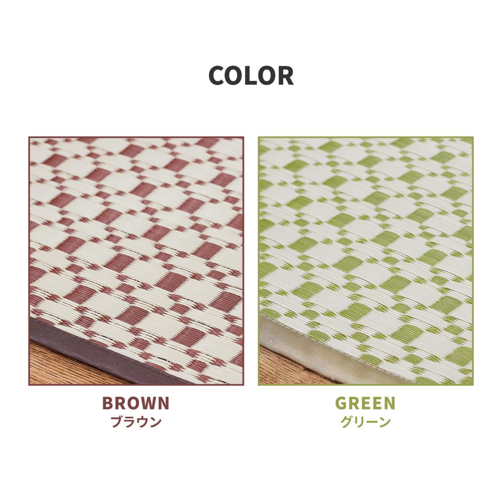 柄上敷き い草風カーペット 洗えるラグ 市松柄