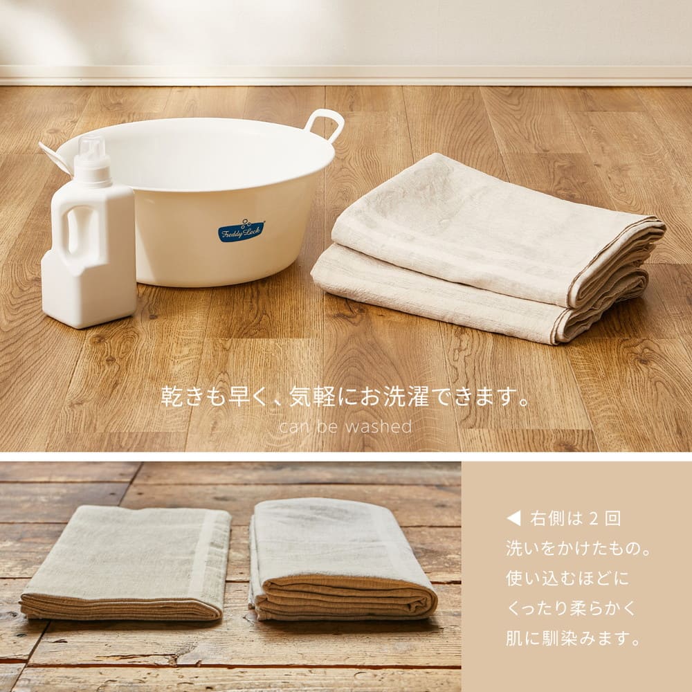 使えば使うほどやわらかく馴染んで、風合いが増していくため日々の生活の中で”育てるファブリック”としてもお楽しみください。