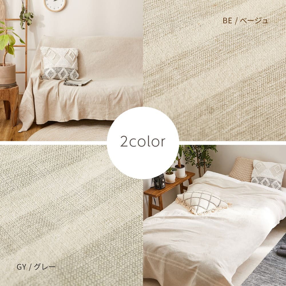 ベッドカバーやソファカバー、膝掛けやテーブルクロス、クリップで留めてカーテンに、マルチに使えるファブリックです。