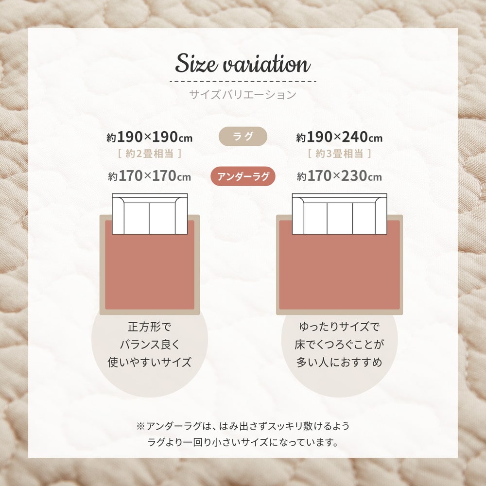 ラグ:190×240cm、アンダーラグ:170x230cm