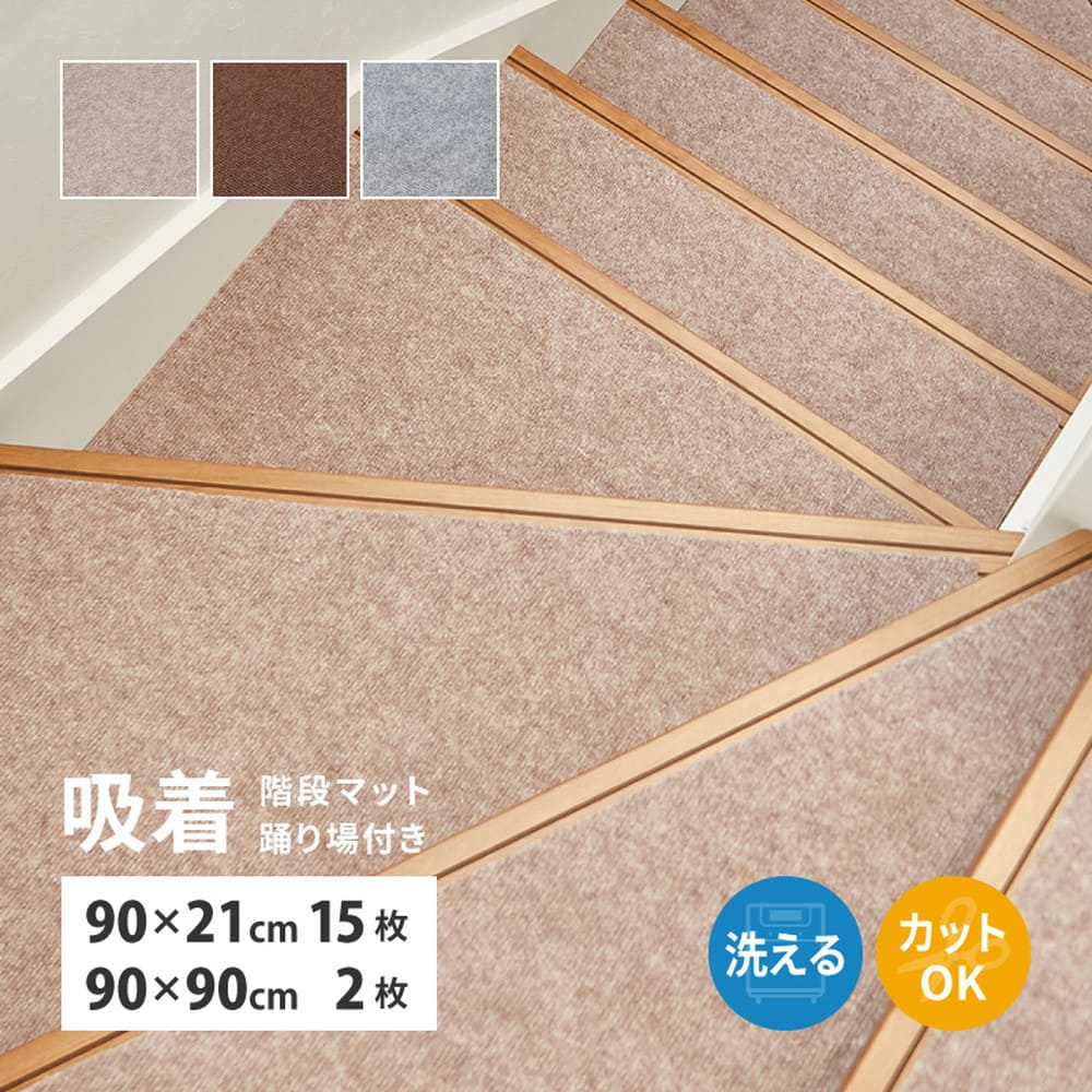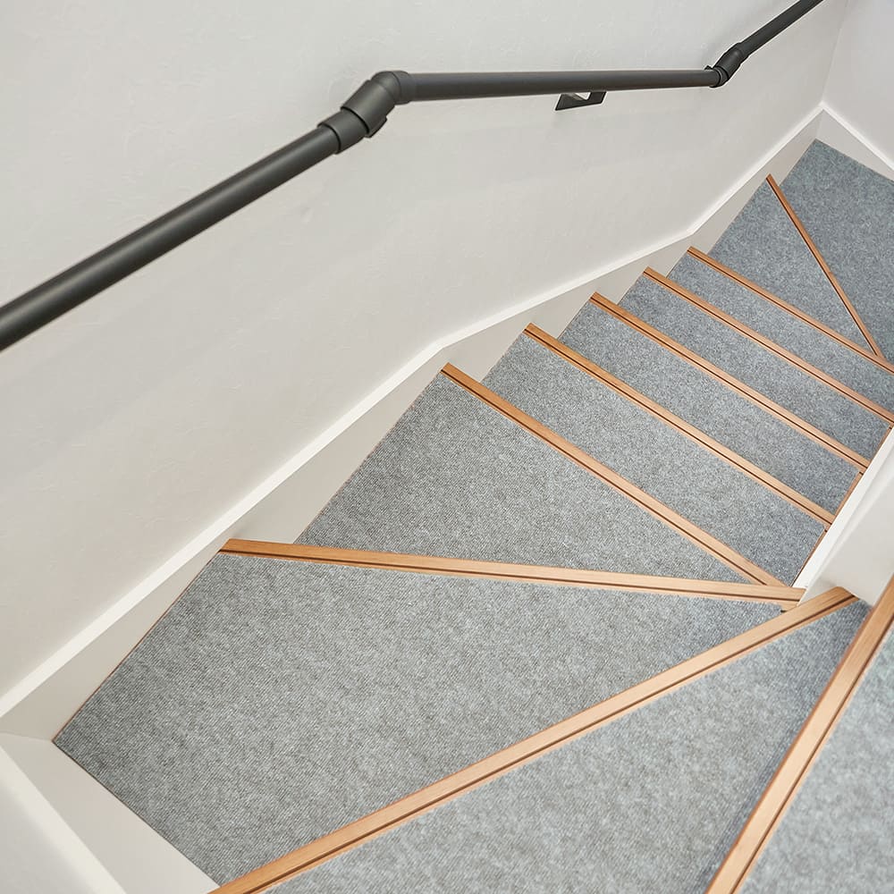 裏面が床にぴたっとくっつく加工で滑りにくい、吸着タイプの階段マットです。階段のキズ防止や足元の冷え防止、足音などの防音対策に。階段幅を敷詰めに近いサイズでカバーでき、ハサミやカッターナイフで自由にカットもできるため細い階段などにも対応◎お好きなサイズでお使いいただけます。汚れても洗濯できるからお手入れもかんたんでいつも清潔に。お子様やペットと暮らすご家庭にもおすすめです。床暖房にも対応しています。