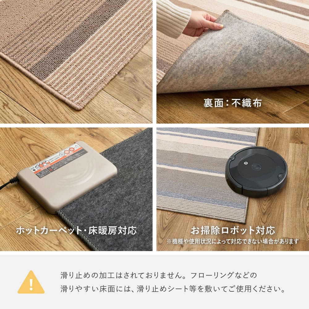 汚れに強くて手入れがしやすく、軽くて丈夫なポリプロピレン製のラグは、小さい子どもやペットのいる家庭にもぴったり。汚れが気になってきたら洗濯機で丸洗いOK。速乾性にも優れているため洗濯しても乾きやすく、ラグが再び使えるまでの時間も短縮できます。抗菌・防臭効果で衛生面もあんしん!汚れやすいダイニングでの使用もおすすめです。