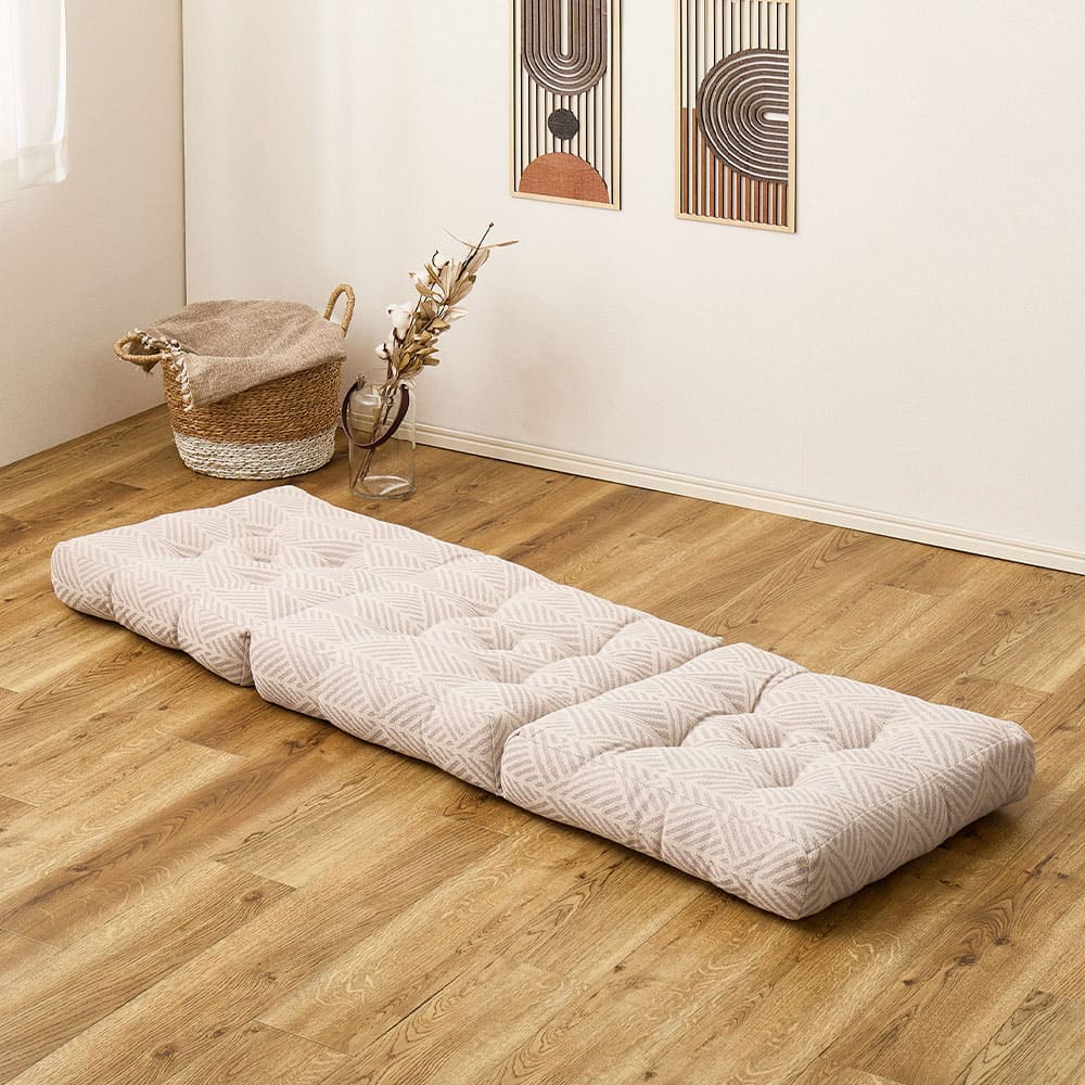 ナチュラルな雰囲気でインテリアになじむ、おしゃれなごろ寝クッション。たっぷりのわた入りで寝心地の良い柔らかさと、コンパクトに折りたためる3つ折り仕様で使い方も自由自在!表面はさらっとしたタッチと素朴な仕上がりが魅力のインド綿100%。他の原産地の綿と比べ、ふんわりとした柔らかさのあるインド綿は、吸湿発乾性が良く年間を通して快適なのでオールシーズン使えます。