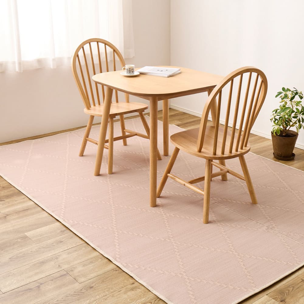パステルカラーがかわいい、水に強い素材でできたい草風カーペット。地味な雰囲気になりがちな和室も明るくかわいいお部屋にイメージチェンジできます。傷んでしまった畳のカバーや、新しい畳の日焼けやキズの防止にも。パイプの表面に筋が入っている筋入りパイプで、肌に密着しないからベタベタしにくく、汗ばむ季節にもおすすめ。また、パイプ内の空気層の保温効果で床からの冷気を防ぐため、寒い季節でもあたたかく過ごせます。裏面は不織布貼りで、フローリングなど床への傷が心配な場所でも安心です。