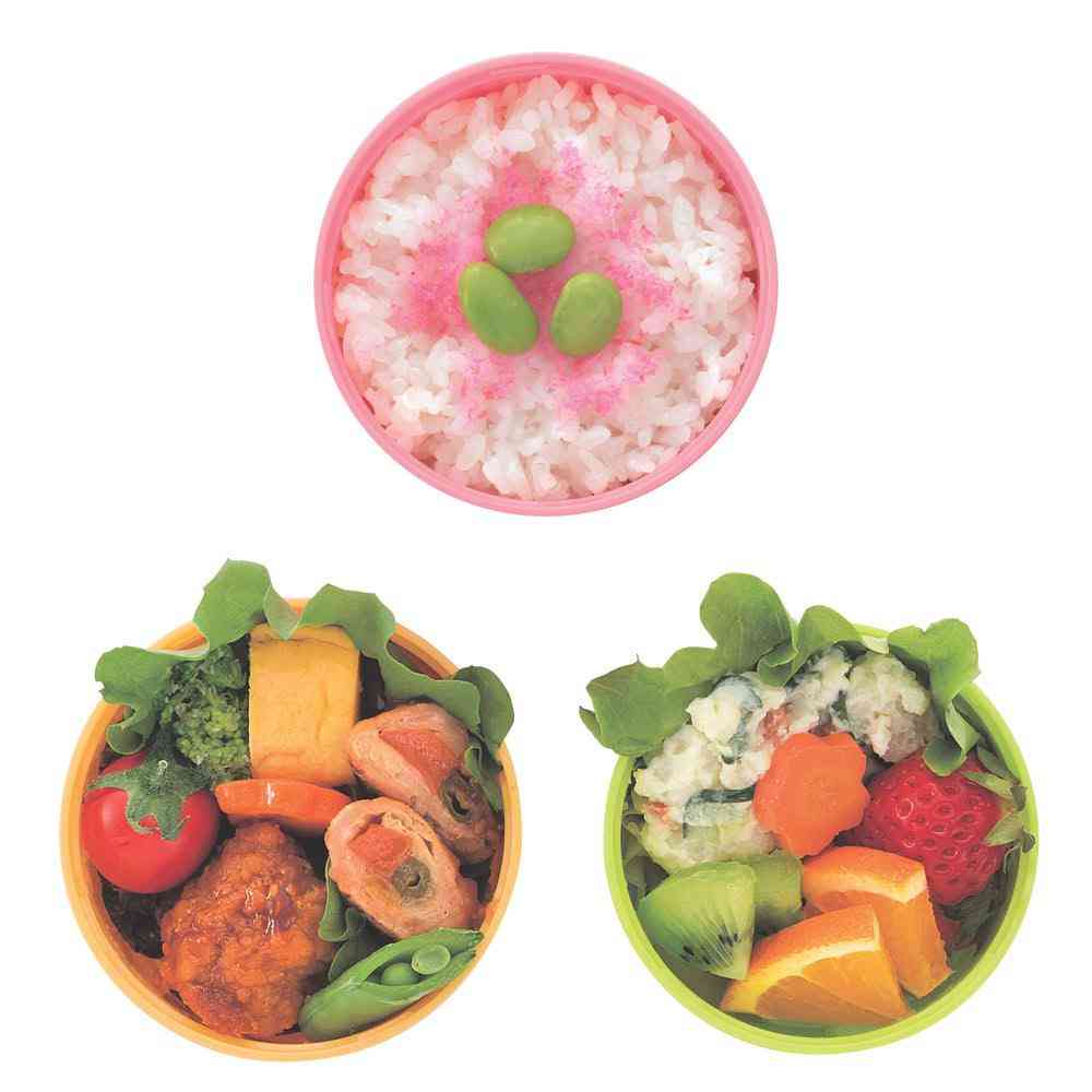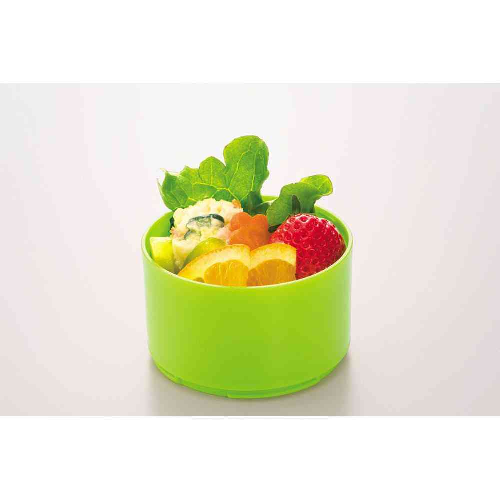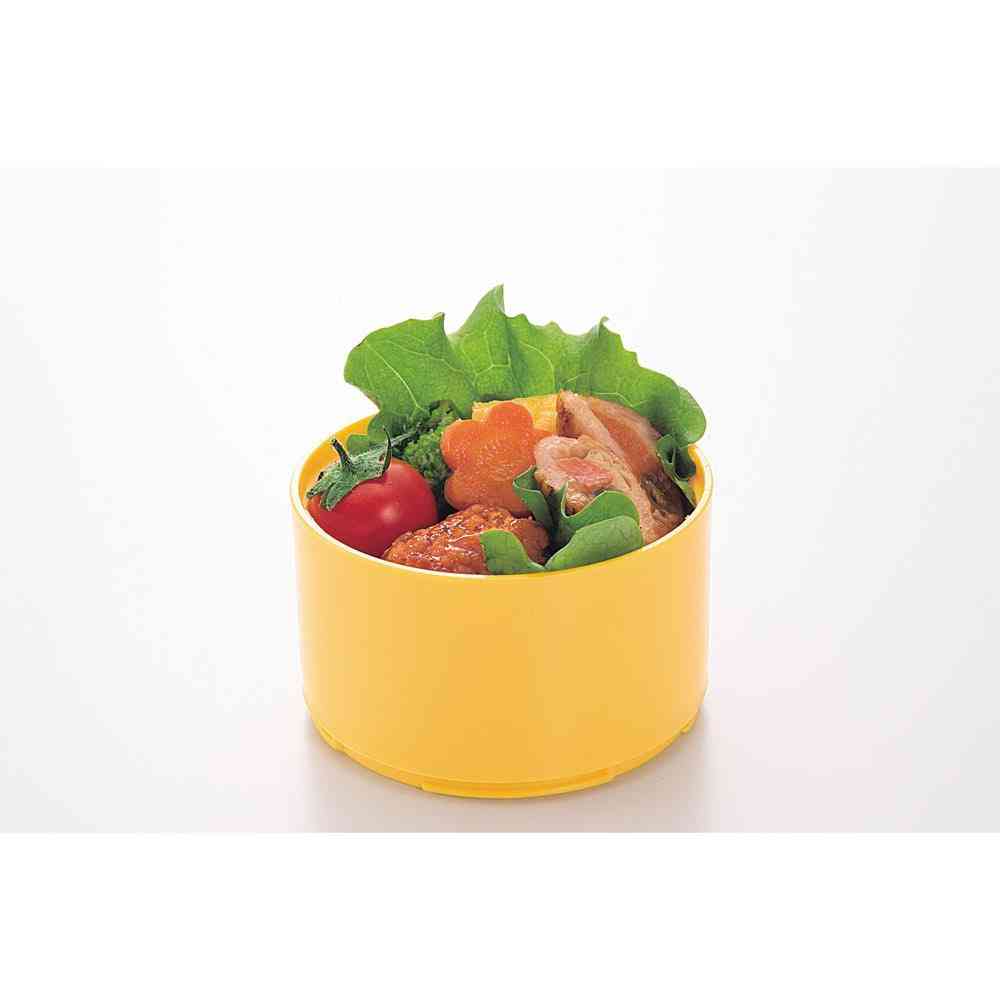 バッグの中に縦にスッキリ収まる、携帯にも便利なランチボックス。 最上段のフタに調味料やふりかけ、ピックなどを入れることができます。 おかずとサラダ・フルーツを分けて詰めることができるので、汁が混ざることがありません。 ケース(大)の容量は、約240ml。お茶碗1杯のご飯に丼の具材をのせることもできる、便利な容量です。 1段でも2段でも使えます。 [セット内容]外フタ×1、中フタ×3、ケース小(170ml)×2、ケース大(240ml)×1 [電子レンジ]対応(中フタ、外フタを除く)