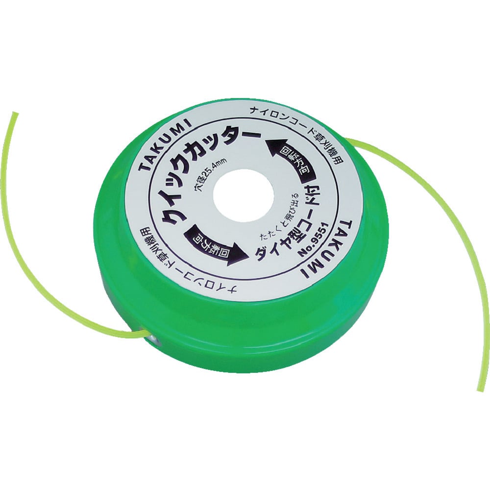 ●回転中に叩くとコードが飛び出す小型オート式です。●コード交換は刈払機に取り付けたままできます。●穴径(mm):25.4●コード長さ(m):4●直径(mm):130●色:緑●厚さ(mm):45●品名:クイックカッター●半自動式 質量310g