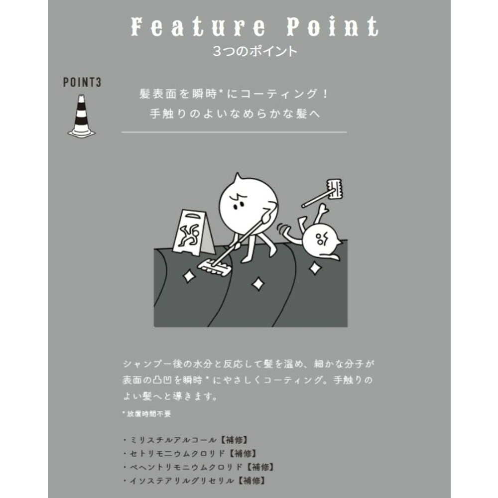 PG、エタノール、水、ミリスチルアルコール、セトリモニウムクロリド、ベタイン、ヒドロキシエチルウレア、バオバブ種子エキス、ゼイン、シクロヘキサン-1,4-ジカルボン酸ビスエトキシジグリコール、加水分解ケラチン(羽毛)、ベヘントリモニウムクロリド、イソステアリルグリセリル、ジラウロイルグルタミン酸リシンNa、乳酸、イソプロパノール、DPG、香料
