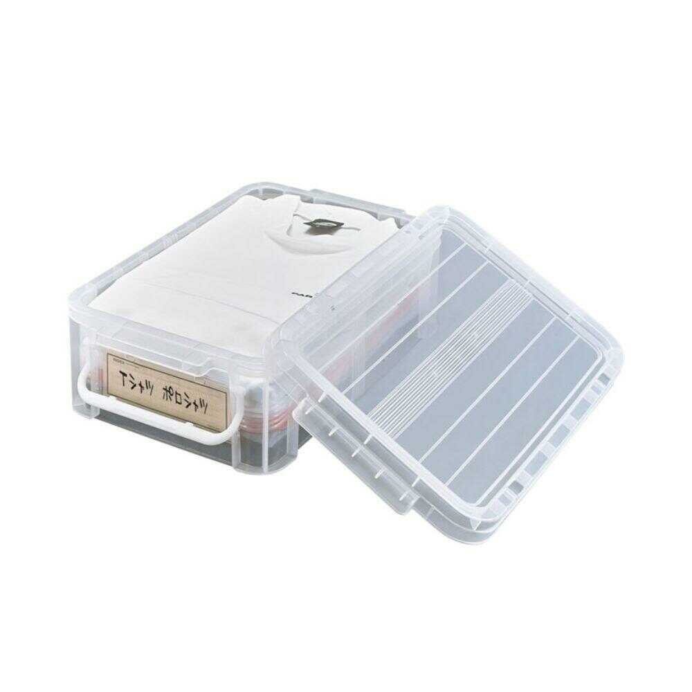・積み重ねできる丈夫な収納ボックスです。 ・中身が分かりやすいクリアタイプです。 ・A4用紙がすっぽり入るサイズ感です。工具収納から押し入れ収納まで様々なシーンで使えます。 ・Tシャツやポロシャツなど衣類も収納できます。 ・フタを固定するストッパー付きです。 ・容量12L。