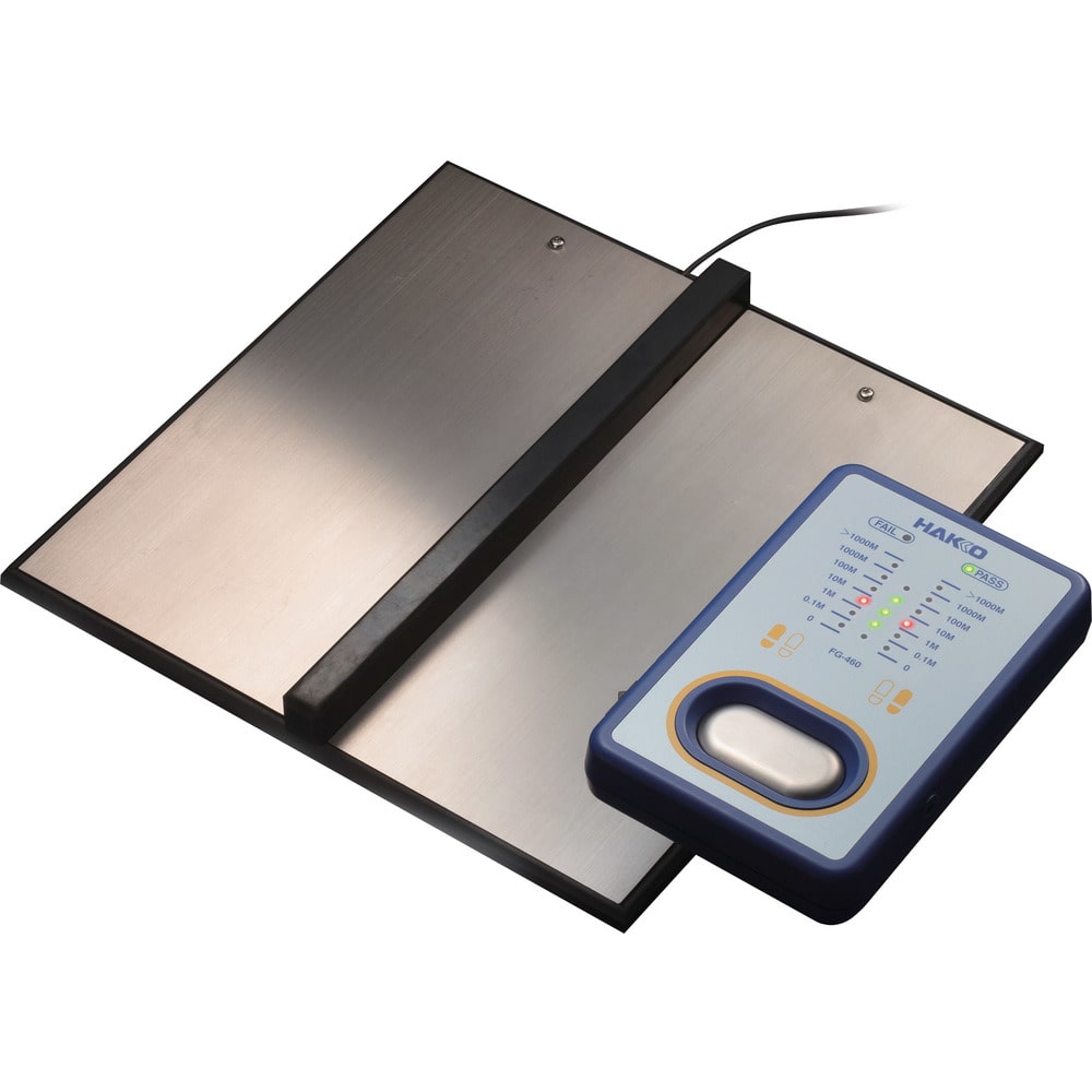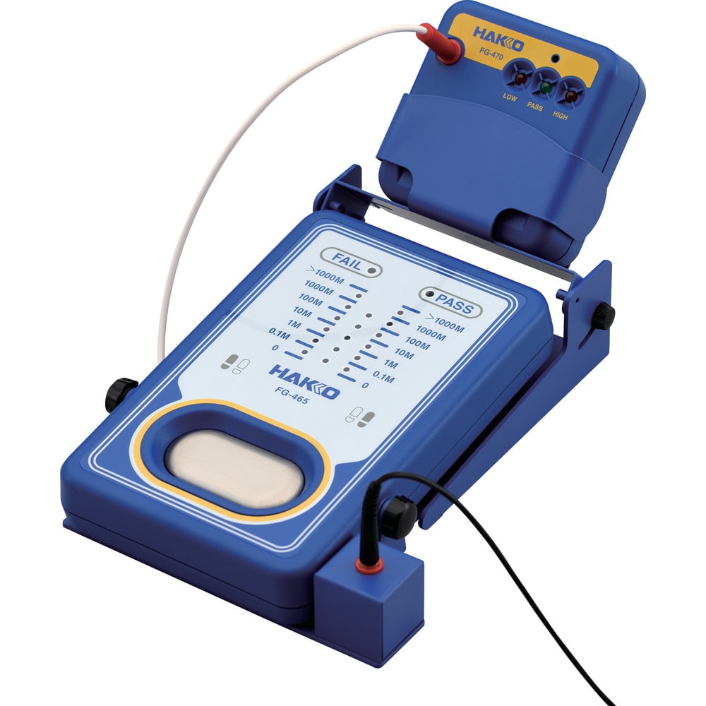 ●JIS T 8103:2010に対応。両足同時測定し、左右それぞれの測定結果を表示します。●専用のソフトウェアをダウンロードすることで測定結果をデータ保存できます。●バーコードリーダー、カードリーダーを使用することで測定者のID管理が可能です。●リストストラップテスター(FG-470)と連動することでフットウェアと同時測定が可能です。●測定精度:±5~±10%●幅(mm):120●奥行(mm):185●高さ(mm):30●テストプレート縦×横(mm):300×300●測定範囲:上限判定1×10Ω[[の7乗]]~10Ω[[の9乗]]、下限判定1×10Ω[[の5乗]]~10Ω[[の6乗]]●外形寸法(mm):35×25×50●定格:DC24V50mA(ACアダプター付属)●測定電圧:DC20V●動作環境:0~40度 80%RH最大(結露なきこと)●測定範囲:上限判定1×10Ω[[の7乗]]~10Ω[[の9乗]]、下限判定1×10Ω[[の5乗]]~10Ω[[の6乗]]●測定精度:±5~±10% 質量3.2kg
