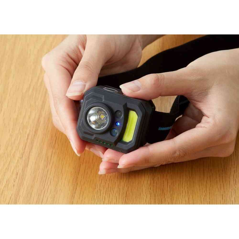 ●広範囲を照らすCOBライト付きリチウム充電式ヘッドライトです。 ●明るさ最大270ルーメンで防水性、耐久性と連続寿命2~18時間を兼ね備えた本格仕様 ●手かざしセンサー搭載で手袋をしている状態でもON/OFFが調整出来ます。 ●小さくて軽いのにパワフルな1台です。