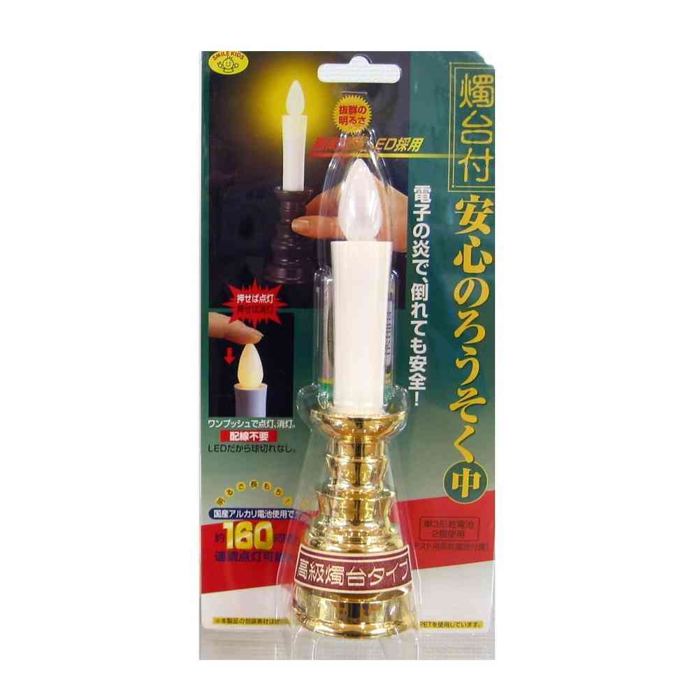 ●電池式だから倒れても安全。 ●明るい黄色LEDを採用。LEDは電球のように球切れしません。 ●燭台付タイプで、そのまま仏壇にセットできます。お墓参りにも携帯しやすく、風にも安心です。 ●炎の部分を軽く押すだけで点灯・消灯できます。 ●マッチ、ライター、配線も不要です。