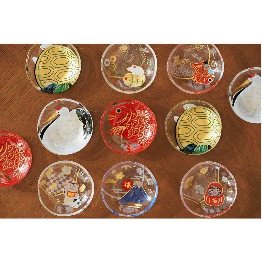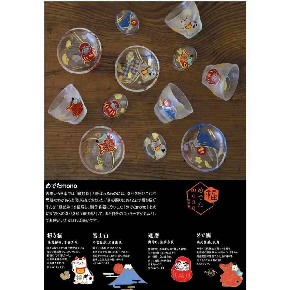 縁起の良い4柄それぞれ金色の1個箱入りで、贈り物にも最適です。 【富士山】富士は「不死」と読めるため不老長寿を祈願し、日本一の高さと末広がりの形から高い目標や理想を意味し立身出世の願いが叶うと言われています。 手作り風仕上げにて成形しておりますので、サイズ・容量等に多少のバラつきがございます。