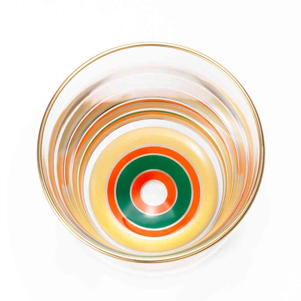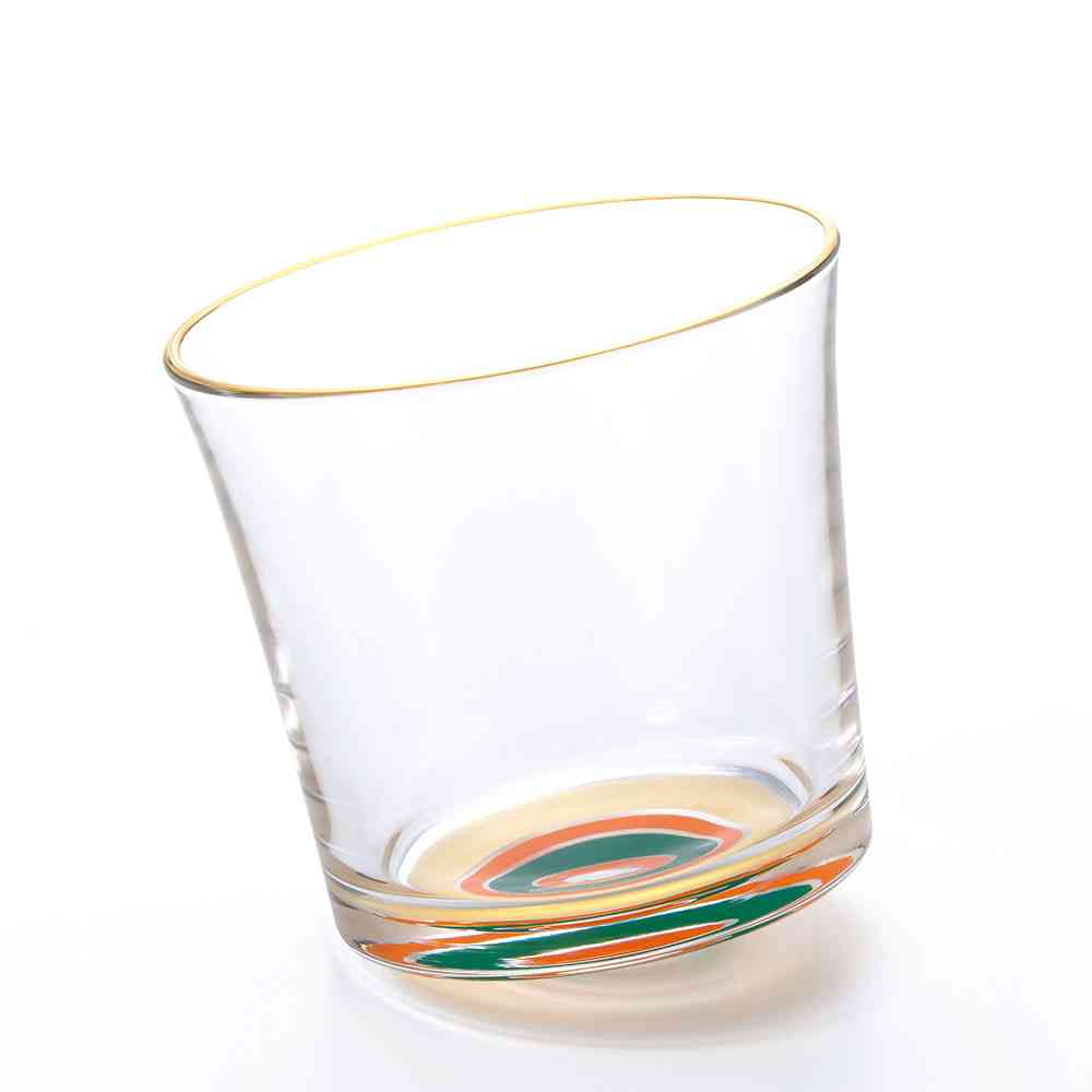 日本各地に残る伝統独楽の魅力的な色彩や絵柄をガラス食器に写しとったグラスシリーズです。元来、独楽には「物事がうまく回る」という縁起がありますが、地域によって色彩や絵柄は異なり、それぞれに大切な縁起が込められています。 【博多独楽】天地人・厄除け…日本で最初に鉄芯の曲独楽を作ったと言われ、江戸時代には皇室や将軍家に曲芸を披露するほどの人気でした。金は「天」、朱は「地」、緑は「人」と天地人を表し、厄除けに良いとされています。 色落ちすることがありますので食器洗い乾燥機でのご使用はお避けください。洗浄の際は優しく手洗いをおすすめします。 成形上、底面中央の膨らみ方に多少のバラつきがございます。また、「実用容量」とは傾けた状態で液体が溢れない容量の目安です。