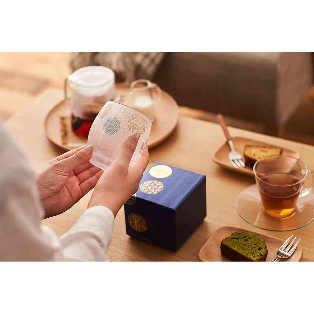 日本古来の文化や意匠を現代の技術でグラスに表現。縁起の良いモチーフを縁起の良い丸形(円・縁)に意匠した伝統的な文様を表したグラスです。パッケージに高級感ある化粧箱を使っており、贈り物に最適です。 色落ちすることがありますので食器洗い乾燥機でのご使用はお避けください。洗浄の際は優しく手洗いをおすすめします。