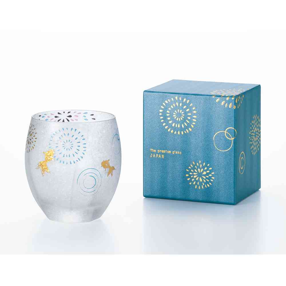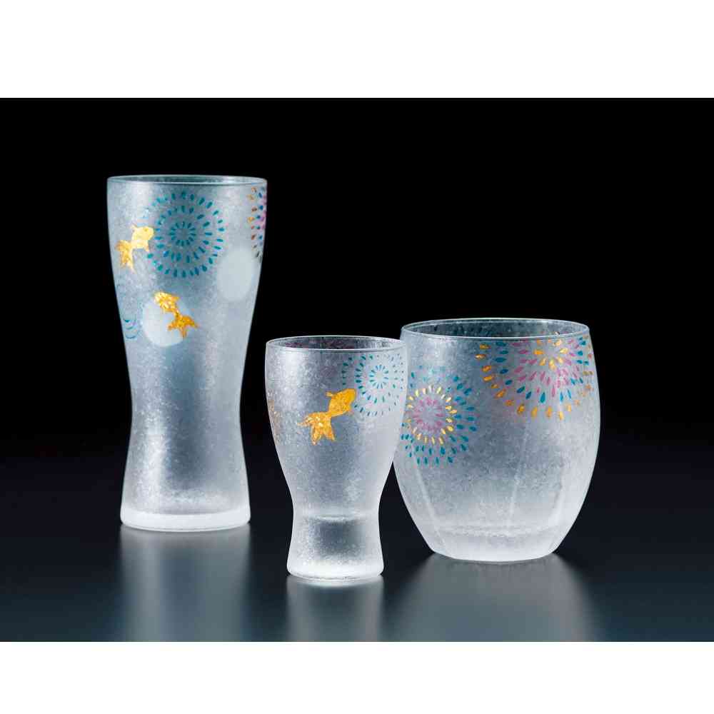 水面に映る「花火」が水紋と重なる様を描いたグラス 色落ちすることがありますので食器洗い乾燥機でのご使用はお避けください。洗浄の際は優しく手洗いをおすすめします。