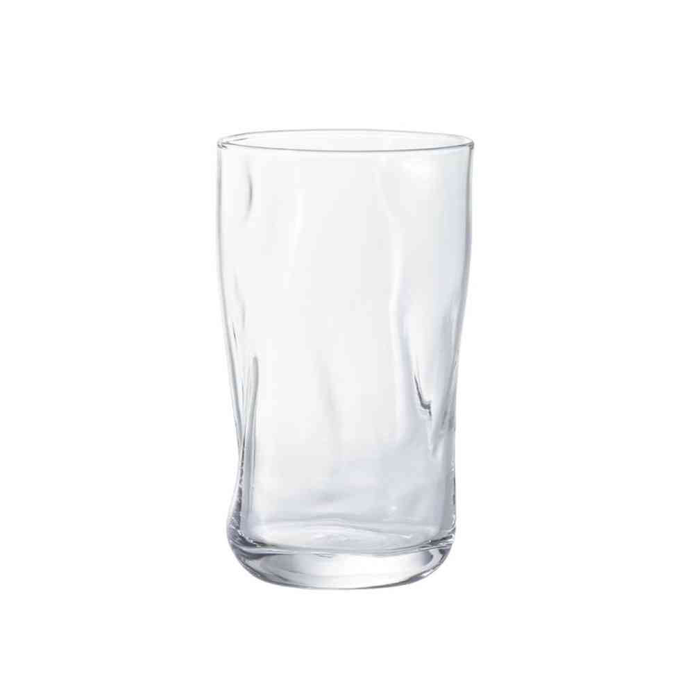 てびねりでおこした焼き物のような温もりのあるグラスです。 緩やかに流れる水の様子をモチーフにしています。 手作り風仕上げにて成形しておりますので、サイズ・容量等に多少のバラつきがございます。