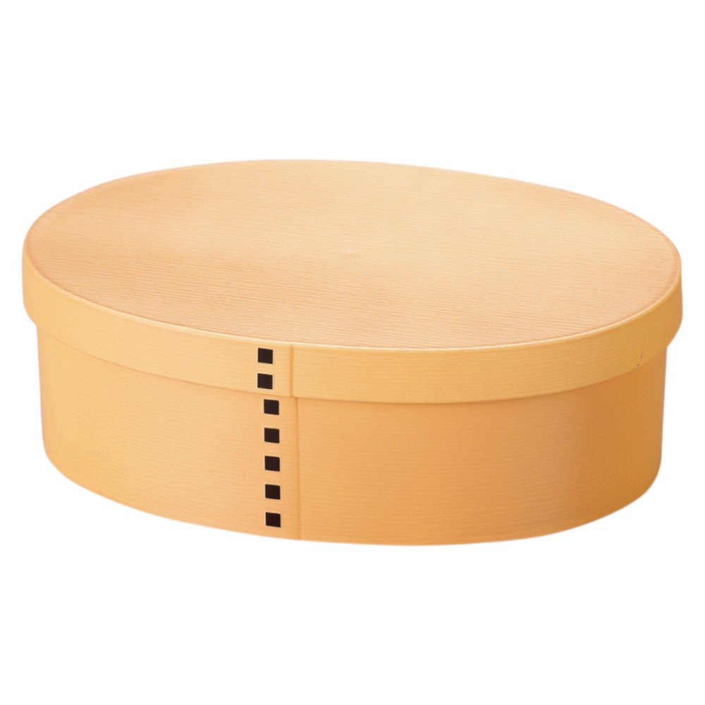 まるで木製曲げわっぱのような質感。職人の手仕事で仕上げられた塗の弁当箱、樹脂製なのでレンジや食洗機も使えます。 滑り止め付バンド付属。