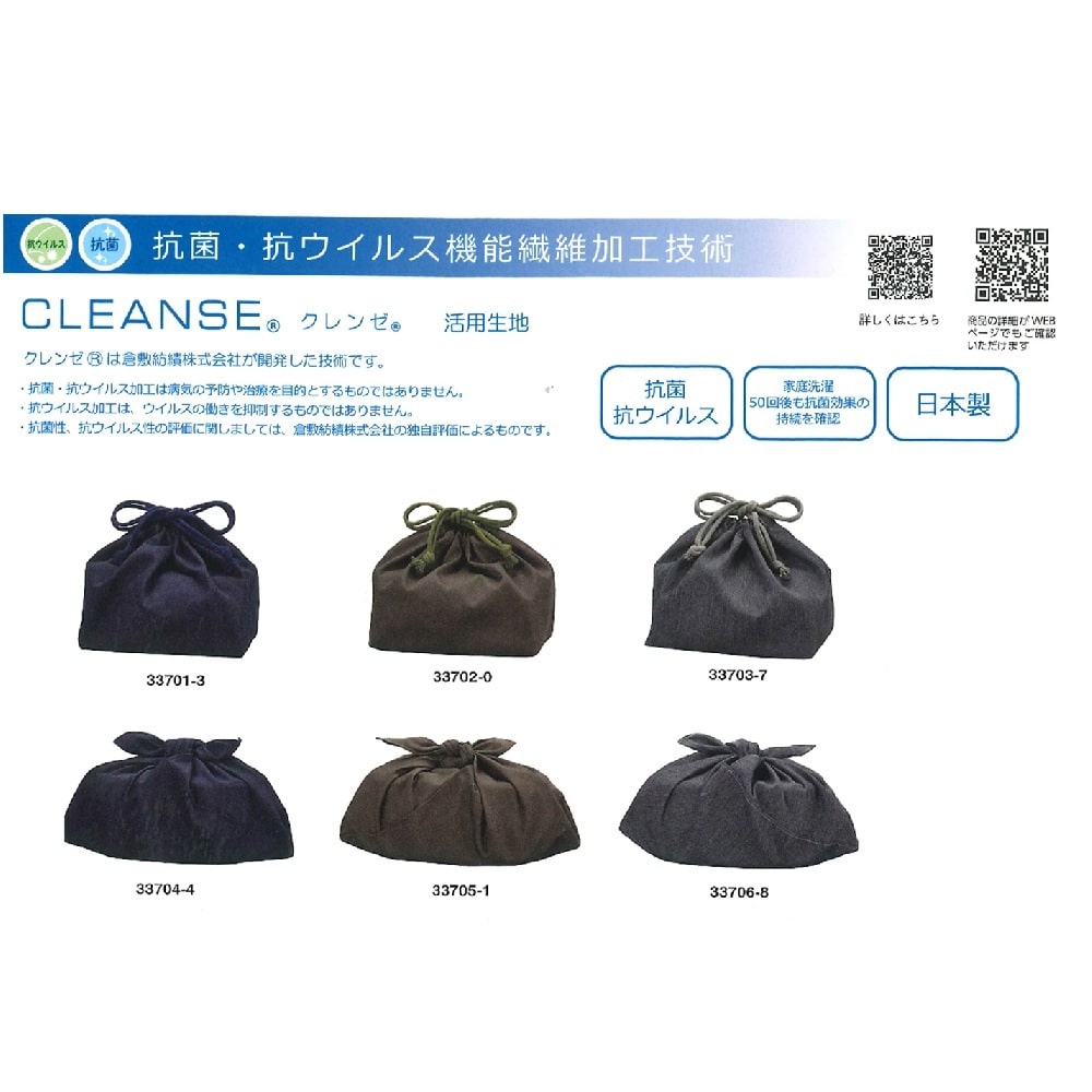 抗菌・抗ウイルス機能繊維加工技術「CLEANSE クレンゼ」活用生地を使用した巾着袋。 クレンゼは倉敷紡績株式会社が開発した技術です。