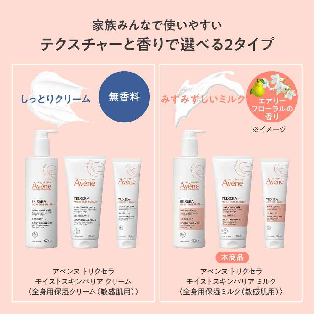 乾燥・肌あれを未然に防ぐ。 さっとひと塗りでうるおいずっと続く。 自然のチカラで乾燥に負けない肌を育む。 生まれてすぐの赤ちゃんから大人まで使えるみずみずしい保湿ミルク。 アベンヌ温泉水*配合で、うるおいを与え、肌の土台**づくりをサポートしてなめらかに整えます。 生後1ヶ月の赤ちゃんからお使いいただけます。 *温泉水(整肌成分)**角層のうるおい。