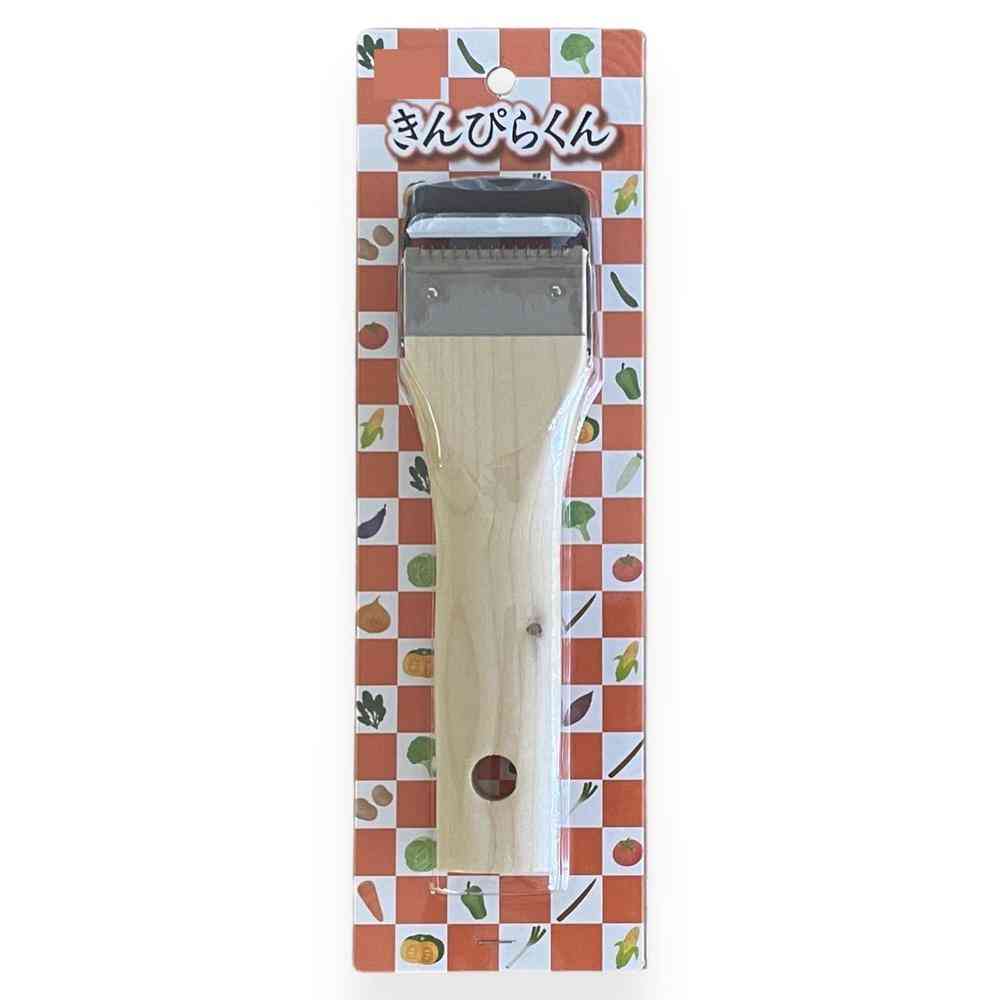 ホオノキの木柄を使った千切りピーラー。 ステンレスのギザ刃と包丁刃のハガネを使用しております。 ギザ刃は3ミリ幅で細い千切りができます。 ゴボウやニンジンなどにお使いください。