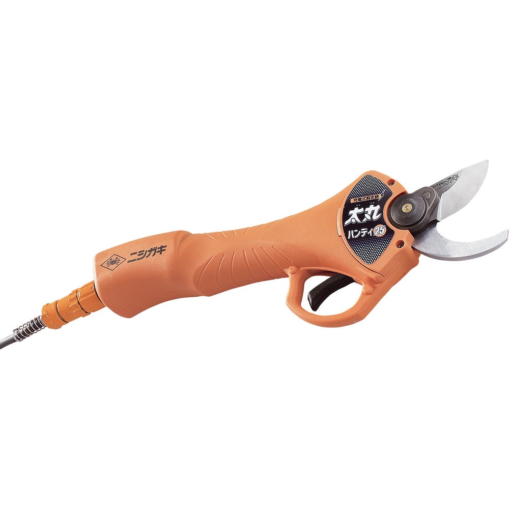 ●25mmの枝木なら約2000本、15mmの枝木なら約6000本切断できます。●グリップ回りもスリムタイプで握りやすくなっています。●トリガー操作で切断径モードを15mm、25mmに切り替えることができます。●セパレート式バッテリー方式で本体重量を極限まで軽くしています。●バッテリーはほかのニシガキ製充電工具(14.4V)にも使えます。●わずか670gの軽さで女性や高齢者にも扱えます。●ブラシレスモーターの寿命は約5000時間で果樹農家様でも十分に使用できます。●収納用に専用鋏ケースと全体収納用にハードケースを付属しています。●モーター寿命5000時間、ブラシレスモーターを搭載しています。●切断能力(mm):25●刃長(mm):40●全長(mm):290●適合替刃:N922-2(上刃)、N922-3(下刃)●長さ(mm):290●幅(mm):100●高さ(mm):50●電圧(V):14.4●電池容量(Ah):7●最大切断枝径(mm):25●種類:本体のみ●バッテリー:14.4V・7Ah 質量700g