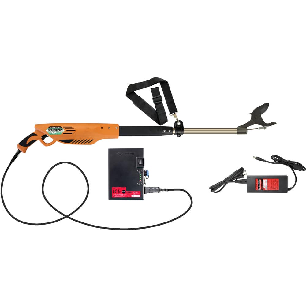 ●枝木を挟み込み、トリガー(スイッチ)を引くだけで、40mmの太さまで切れます。●ブラシレスモーター搭載により、従来のモーターと比べモーター寿命が約50倍の5000時間以上の寿命を実現しました。●バッテリー(Li-IOn 14.4V)をベルトにかけて使用するセパレート式となっており、重量が軽くなっております。●トリガーと刃の動きは連動しておりますので指を離すと刃は開きます。●バッテリーは高速バリカン、太丸ハンディー25と併用出来ます。●モーター保護のために過電流防止装置がバッテリー劣化防止のために過放電防止装置が内蔵されています。●モーター寿命5000時間以上です。●ブラシレスモーター搭載モデルです。●フル充電で40mmの太枝なら約900本、15mmなら約2000本切断できます。●切断能力(mm):40●刃長(mm):90●全長(mm):1000●電圧(V):14.4●容量(Ah):7.0●伸縮:不可●最大切断枝径(mm):40●電池容量(Ah):7.0●適合替刃:N-912-1 太丸充電用替刃●最大切断径:約40mm 質量1.93kg