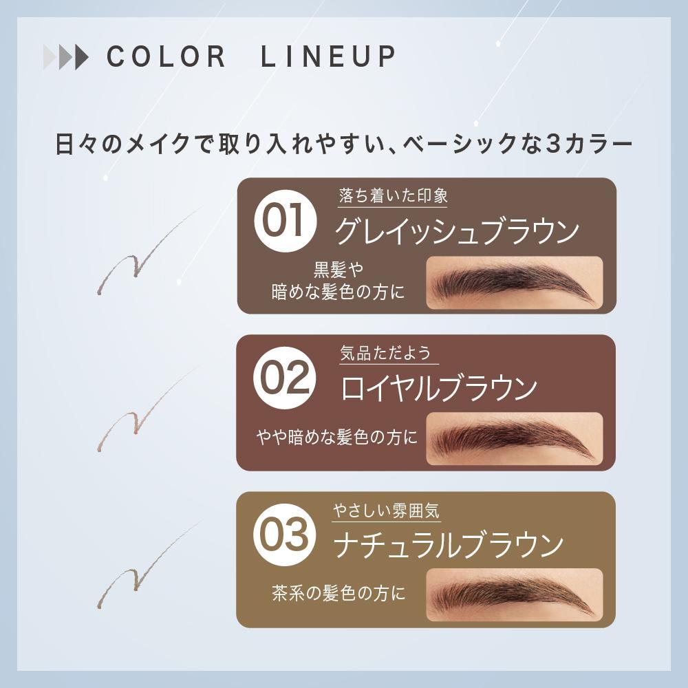 毎日誕生、私の正解アイブロウ 流星級の細さ0.01mmライン 超極細リキッドアイブロウ ●テクニックいらず ●眉尻まで思いのまま ●こすれに強い 落ち着いた印象グレイッシュブラウン 黒髪や暗めな髪色の方に 流星級の超極細リキッドライン 繊細でリアルな美眉 筆ペンタイプで芯が折れる心配がなく、しっかりお肌に密着。 眉尻まで1本1本描け、夜までしっかりキープします。 眉毛並みの細さで描ける超極細筆 こすれに強い1日中落ちない 美容液成分配合:パンテノール(保湿成分)