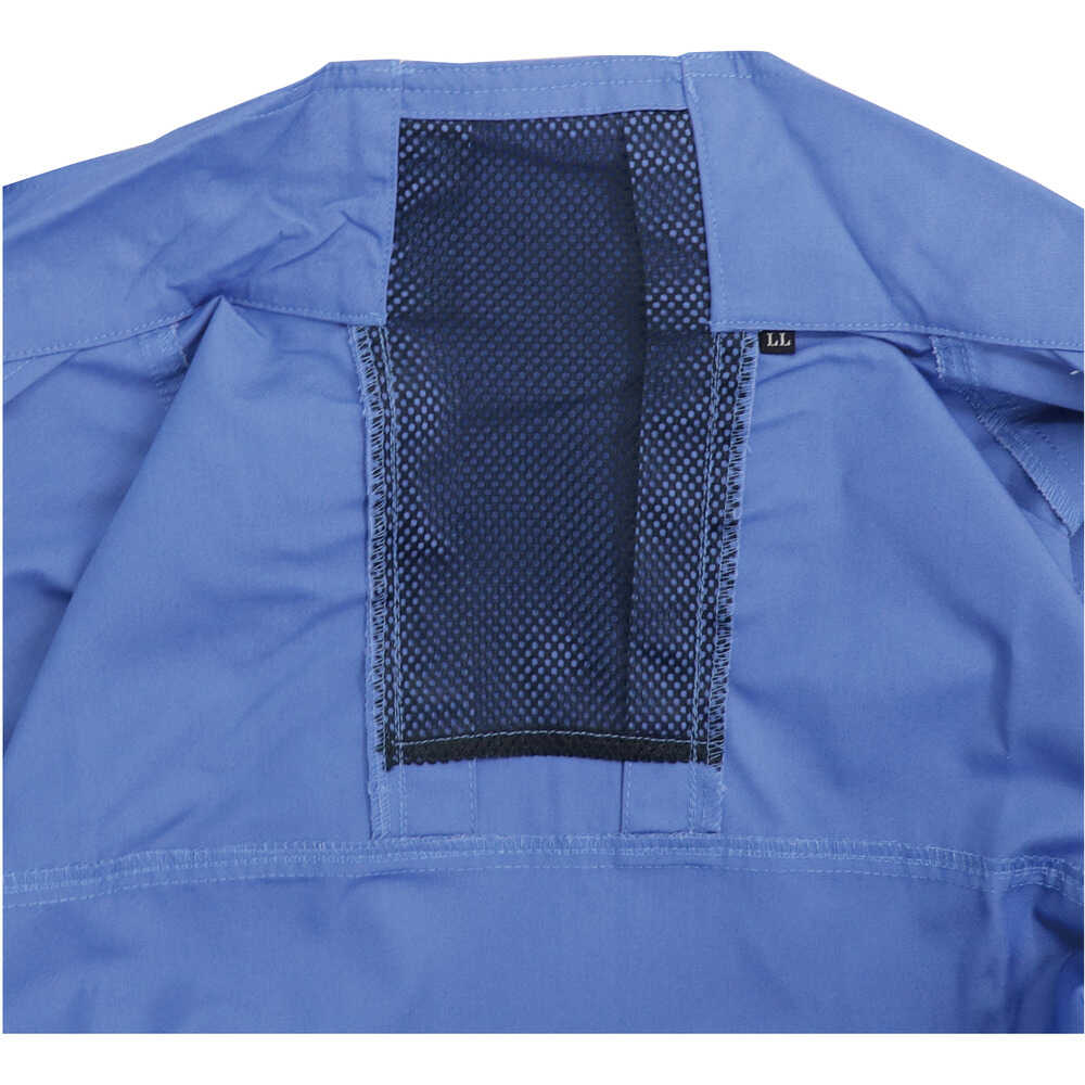 ●自己消火性に優れ、接炎しても溶けずに炭化しますので、火を使う現場でも安心して使えます。●酸・アルカリの飛散や汚れにも強い素材です。●危険な火の粉の吸い込みを防ぐカバーが付いています。●首から背中にかけて風気路が付いているので涼しく快適です。●背中に保冷剤ポケットが付いています。●溶接にも使える防炎加工ブルゾンです。●色:ライトブルー●サイズ:M●着丈(cm):64●胸囲(cm):116●肩幅(cm):50 質量647g
