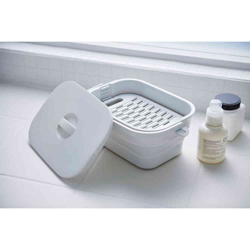 ●上履きのつけ置き洗いに ●洗濯板が落し蓋に ●フタ付きで見せたくない洗濯ものを隠せます ●たたんでコンパクトに ●洗濯板付き ●高さ調節ができます ●吊り下げ用フック付き ●ハンドル付きなので持ち運びがラクラク ●容量7l