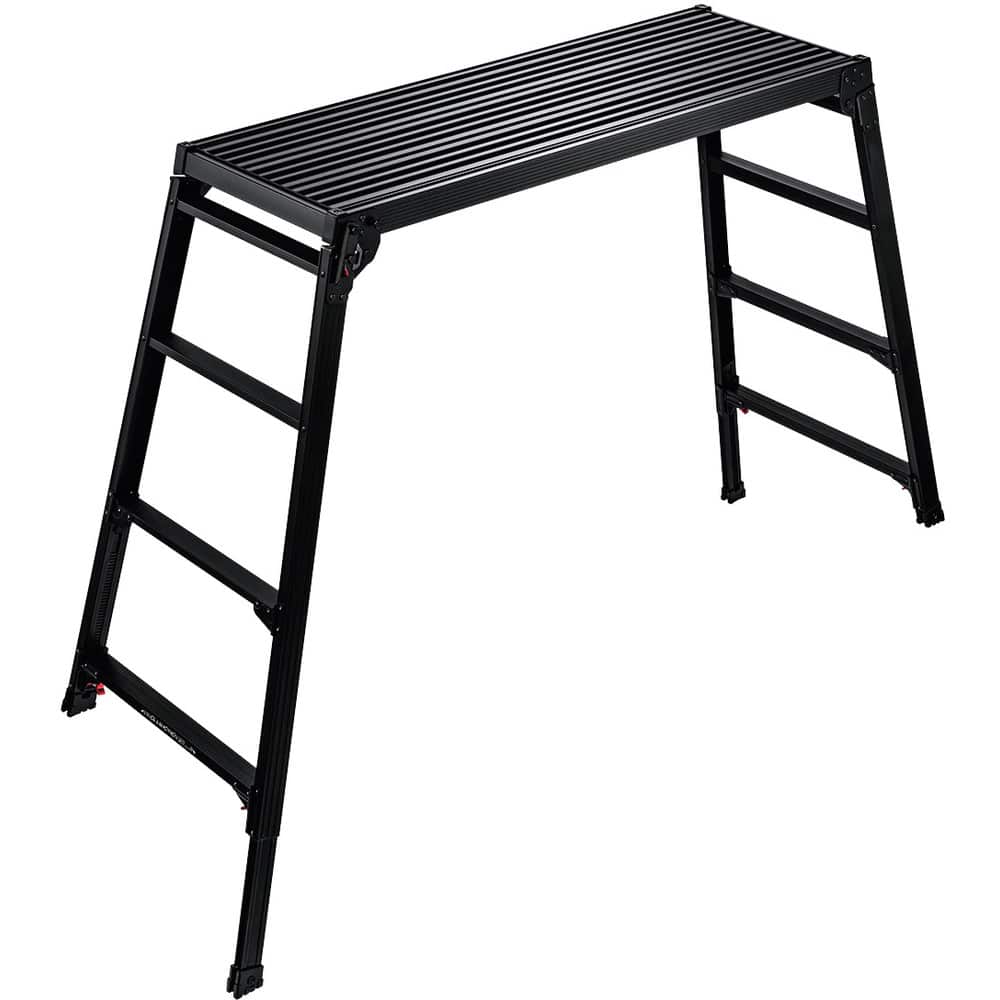 ●幅広天板と脚部伸縮で足元の安心感も抜群です。●約22cmまでの段差を解消できます。●奥行42Cm幅広タイプ●最大使用質量(kg):100●天板高さ(m):1.01~1.23●天板寸法(mm):1200×420●脚部伸縮ピッチ(mm):6●Aマーク:対応●仮設工業会:認定品●設置寸法(mm)幅×奥行●収納時寸法(mm)全長×幅×厚さ:1230×610×190●Aマーク認定品●脚部伸縮ピッチ:6mm●折りたたみ式●下部操作レバーで調整可能な伸縮脚 質量9kg