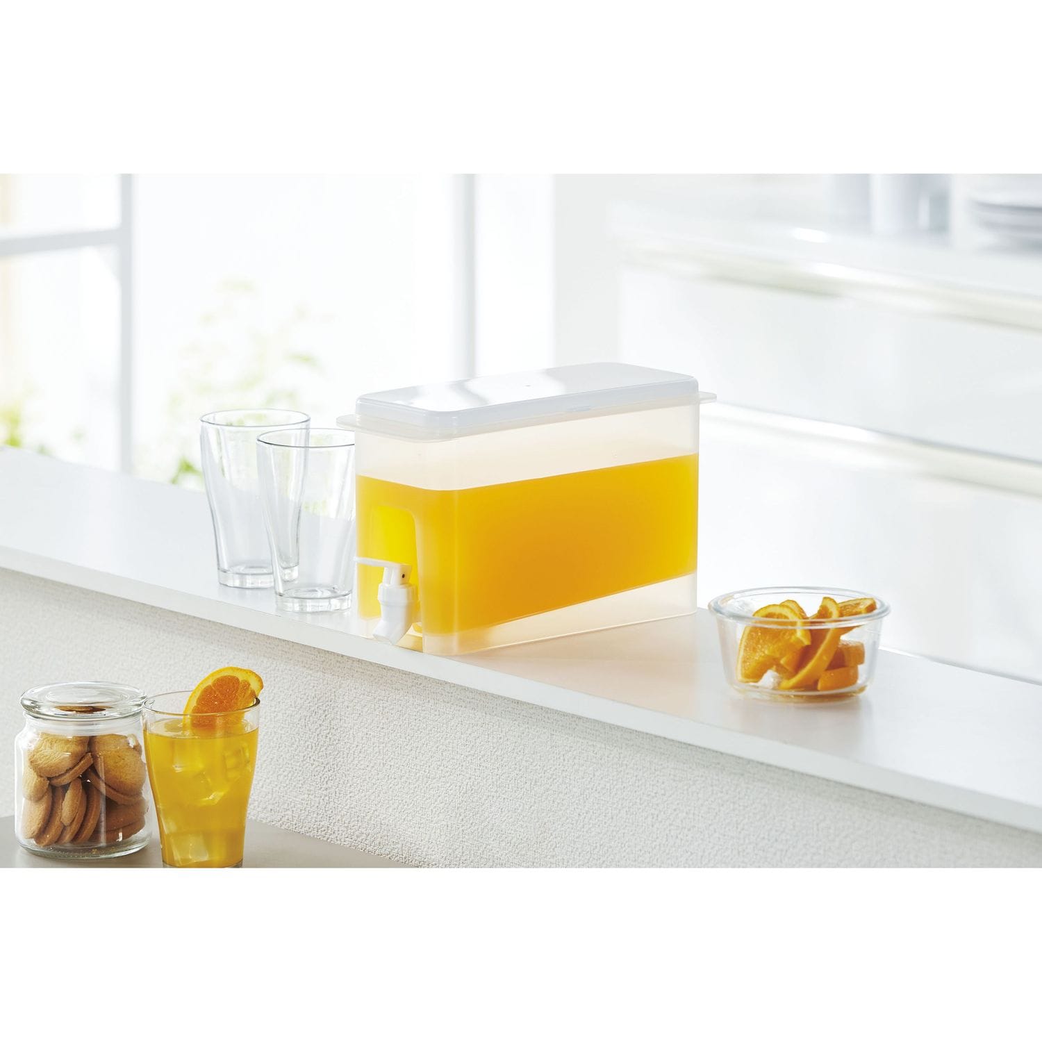 少なくなっても注ぎやすい、傾斜付きのスロープ設計!そのままでも冷蔵庫内でも。 置いておくだけで 簡単ドリンクサーバー。お家がまるでドリンクバー!少なくなっても注ぎやすいスロープ設計!フタがガバッと開いて補充ラクラク!ロック機能で充填もラク!子供から大人まで簡単に入れられるドリンクサーバー。お手入れ簡単、パーツ取り外しOK!様々なシチュエーションで使えて便利!レジャー、ダイニング、スポーツ、災害時に。<仕様>容量:2.8L●セット内容:本体×1、フタ×1、蛇口パーツ×1、パッキン×2、接続パーツ×1、スパナ×1●耐熱温度:70℃●耐冷温度:-30℃