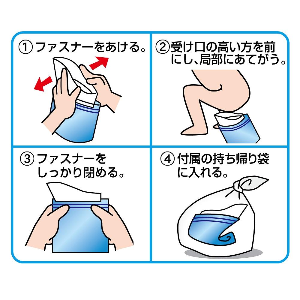 オシッコをすばやく固め臭いを包む、携帯トイレです。 小さくコンパクトに折りたためるので携帯に便利です。 受け口が発泡体で適度な硬さがあり使いやすい形状です。 蓄尿袋はポリエチレンと不織布の複合フィルムで肌に優しく強度もあり安心です。 ファスナー付きで使用後密封できます。 容量600ml。 安心の日本製です。