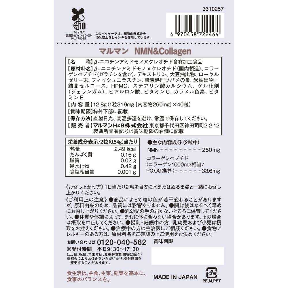 ![◆マルマン NMN&コラーゲン 12.8g(1粒319㎎[内容物260㎎]×40粒)](/img/0170/goods/1/4970458722464_2.jpg)