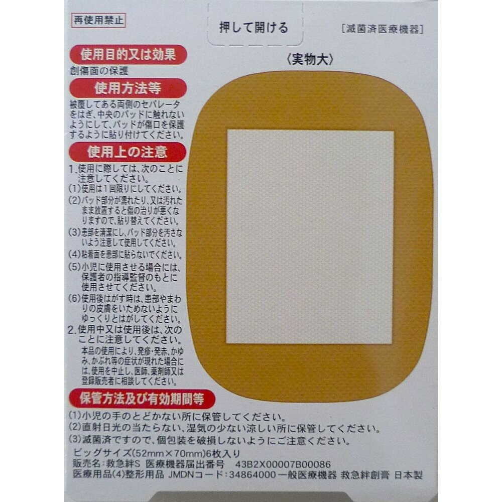 (1)使用は1回限りにしてください。 (2)バッド部分が濡れたり、又は汚れたまま放置すると 傷の治りが悪くなりますので、貼り替えてください。 (3)患部を清潔にし、バッド部分を汚さないよう注意して使用してください。 (4)粘着面を患部に貼らないでください。 (5)小児に使用させる場合には、保護者の指導監督のもとに使用させてください。 (6)使用後はがす時は、患部やまわりの皮膚をいためないようにゆっくりとはがしてください。 (7)本品の使用により、発疹・発赤、かゆみ、かぶれ等の症状が現れた場合には、使用を中止し、医師、薬剤師又は登録販売者に相談してください。