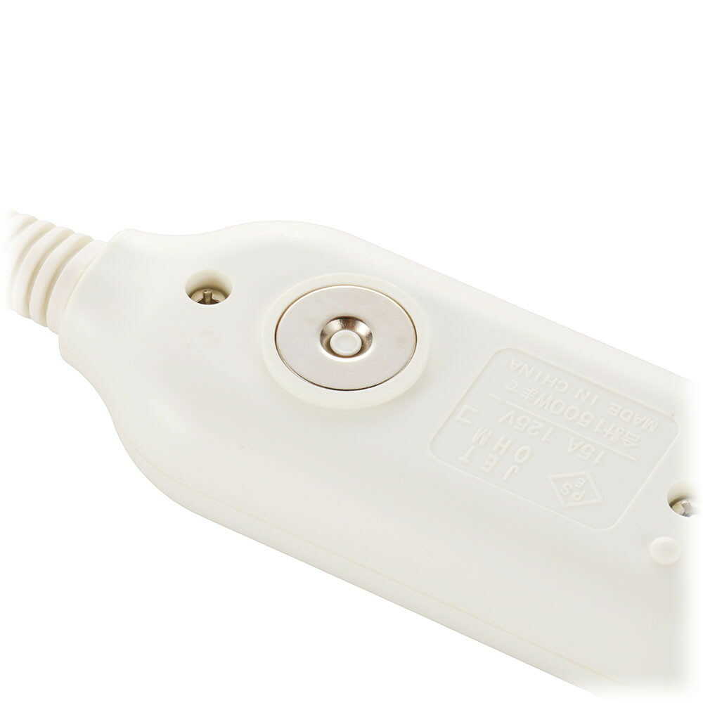 裏面の強力マグネット、スチール部等に仮固定、コンセント周りに熱に強いPBT樹脂使用、難燃、耐熱ボディ、導線の二重被ふくでコード、強度を向上、両方同時に差し込まれた時だけ、シャッターが開く、ホコリシャッター、ホコリ侵入、感電事故防止、フリープラグ