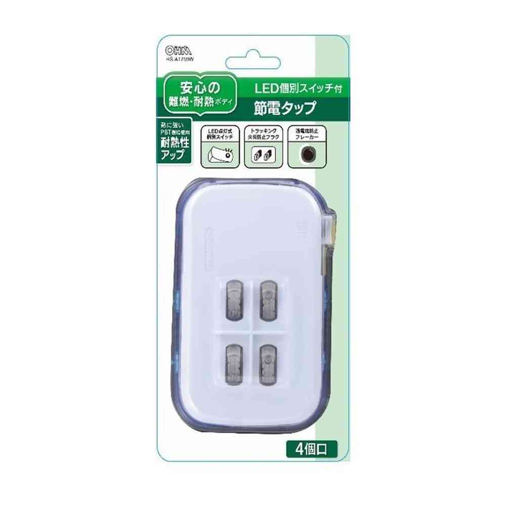 - > オーム電機 節電タップ4個口