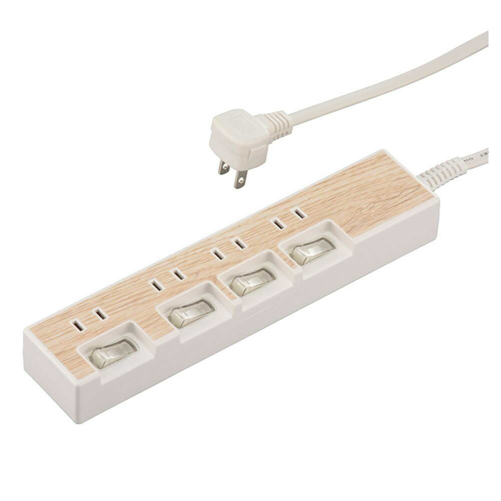 ●こまめにスイッチを切る省エネ仕様 ●待機電力カット、安心品質 ●発熱を抑えるモジュール設計、耐熱性アップ ●トラッキング火災防止プラグ ●二重被ふくで丈夫なコード ●ACアダプターもスッキリ収納 ●壁にかけられるフック穴付き ●カラーは木目調ホワイト