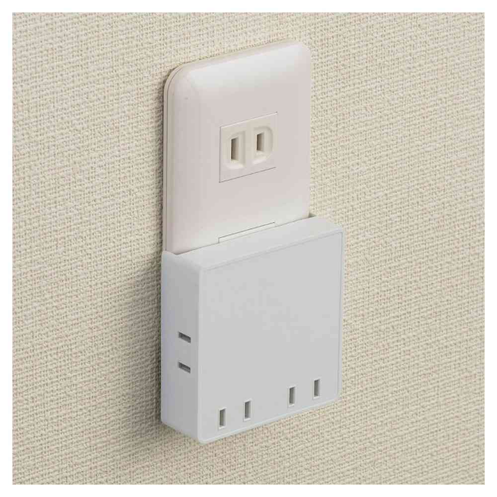 拡張コンセント、スクエアタップ、壁コンセント用、増設、耐熱設計、PBT樹脂、難燃ボディ、絶縁カバー、トラッキング防止