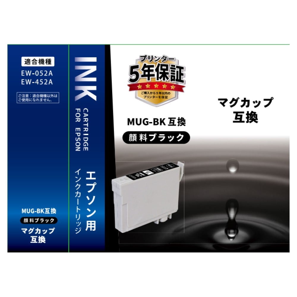 ● エプソンプリンター用インクカートリッジです ● エプソン純正インク マグカップ 顔料ブラック(MUG-BK)の代わりに使えます ● 顔料ブラック ● 1個入り ● プリンター5年間保証対象品