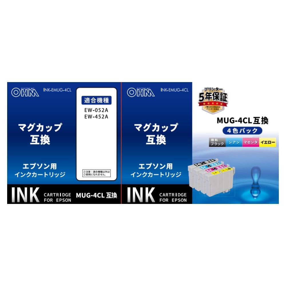 エプソンプリンター用、インクカートリッジ、エプソン純正インクマグカップ4色パック、MUG-4CL、顔料ブラック、染料シアン、染料マゼンタ、染料イエロー、プリンター5年間保証対象品