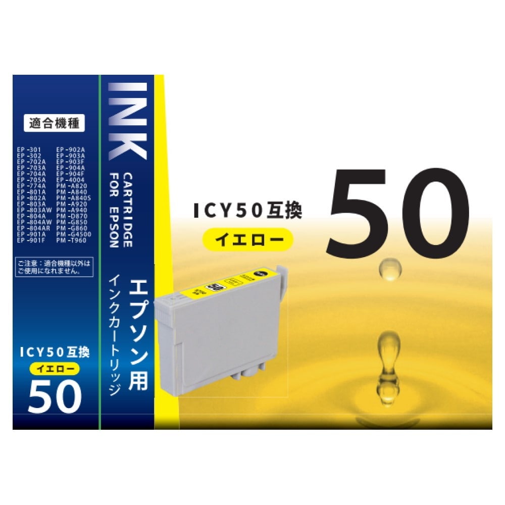エプソン、純正インクカートリッジ、ICY50、染料イエロー、互換インクカートリッジ、1個入り、残量表示完全対応